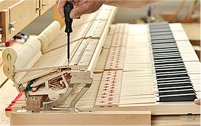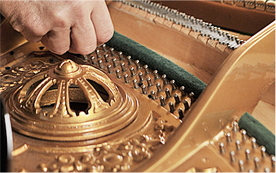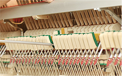在增強鋼琴泛音的部分,我們采用德國的整音方法,不添加任何化學材料,使用天然羊毛,運用純手工扎針技術調整榔頭的硬度,讓每個音產生更多的泛音,持續時間達10s以上。