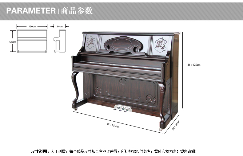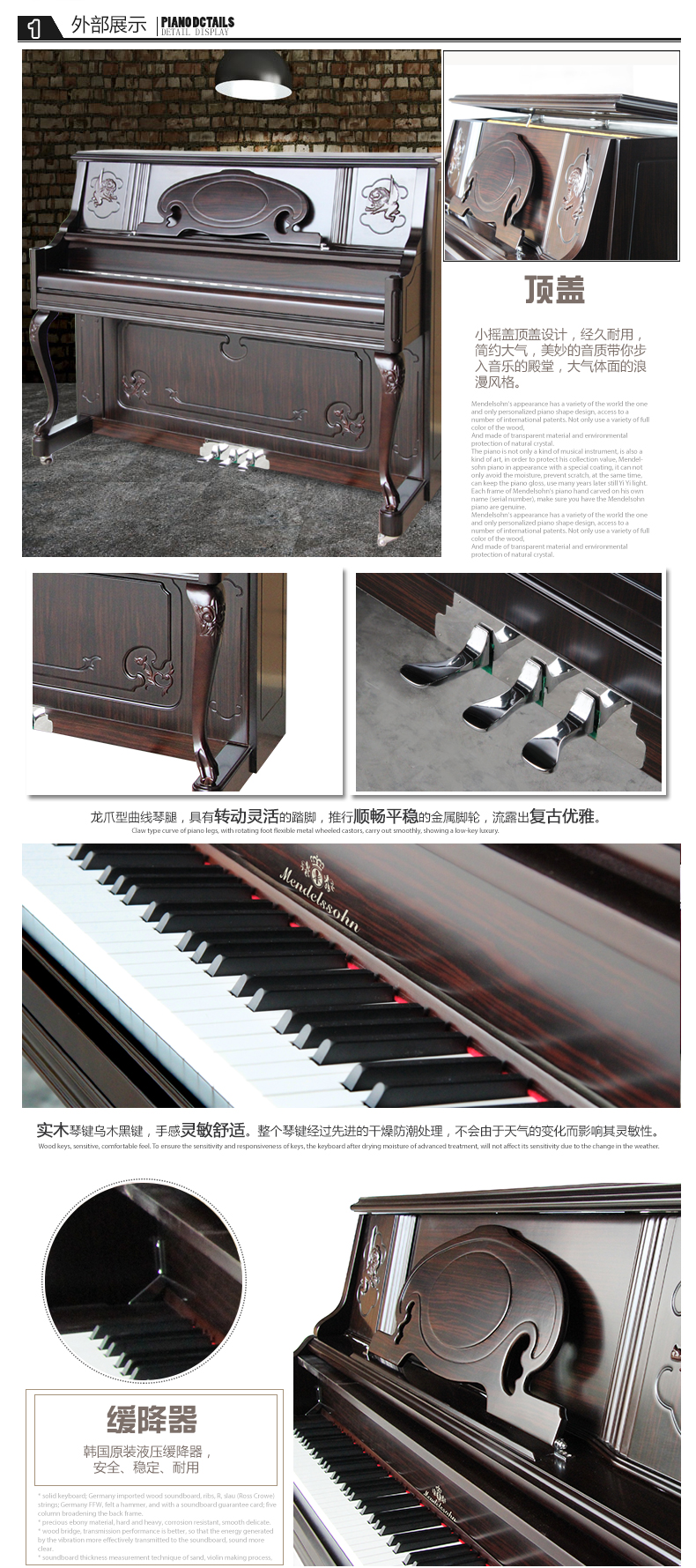 8.鍵盤:歐洲白松實木鍵盤, 烏木黑鍵,不易開裂變形,具有很好的觸感