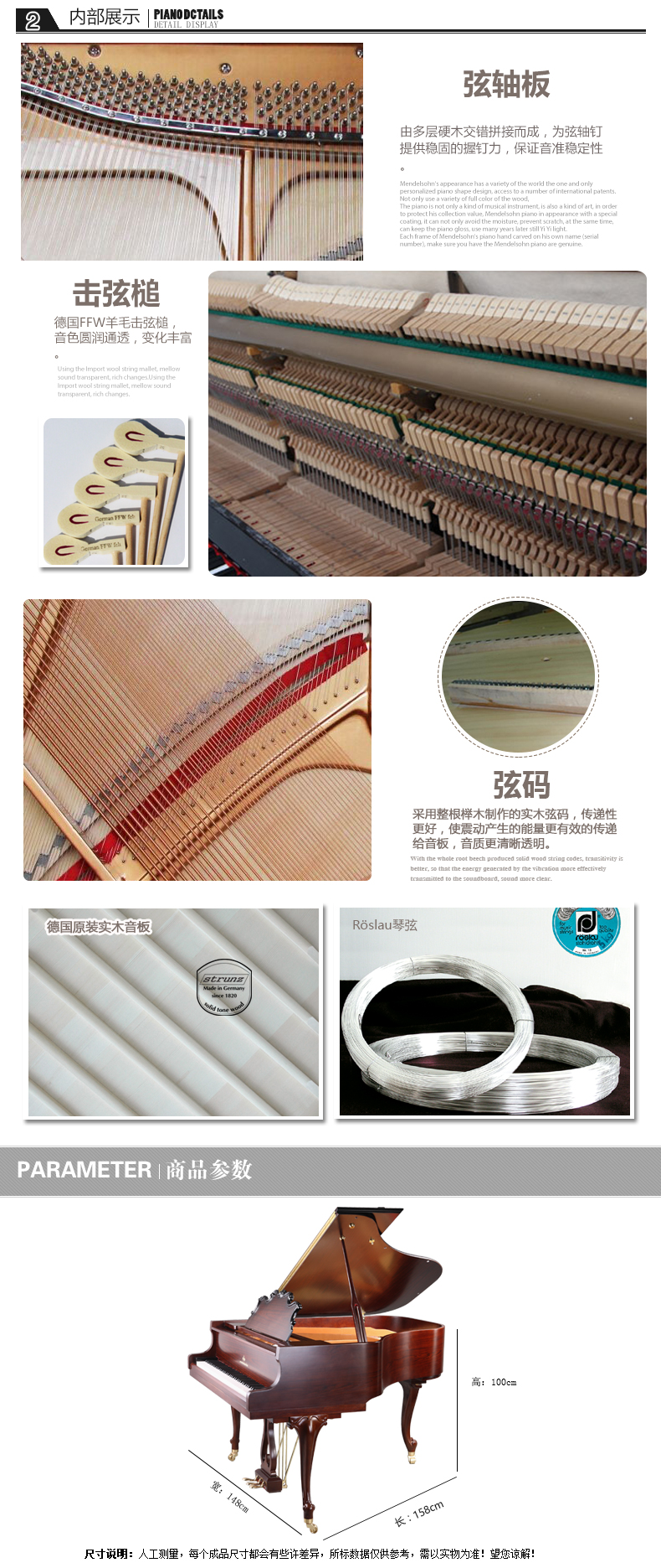 9.弦軸板:采用德國帝豪尼特(dehonit)進口弦軸板,密度大,受力均勻,穩(wěn)定性更強