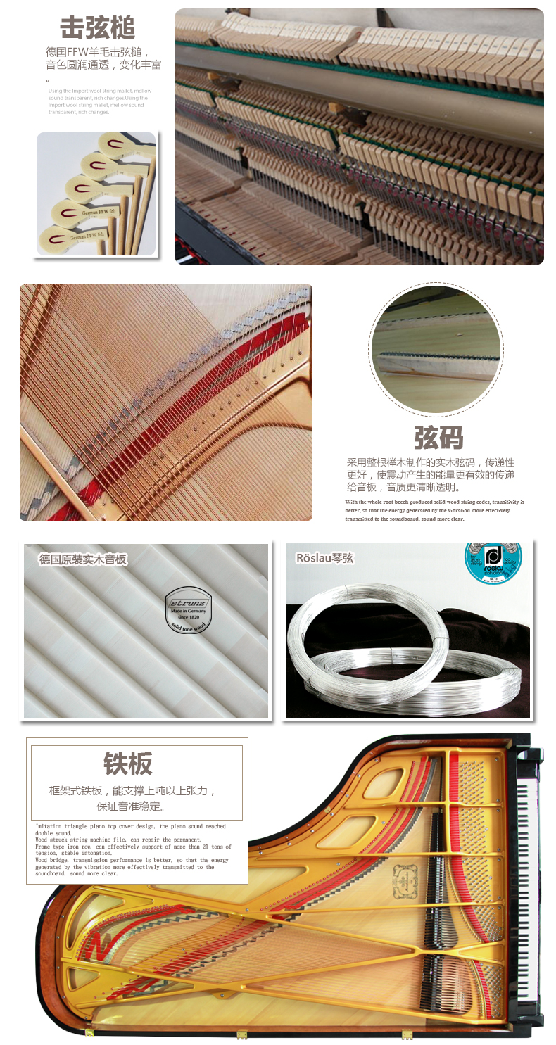 1.榔頭:擊弦槌采用德國進口FFW優質尼氈,音色柔和優美