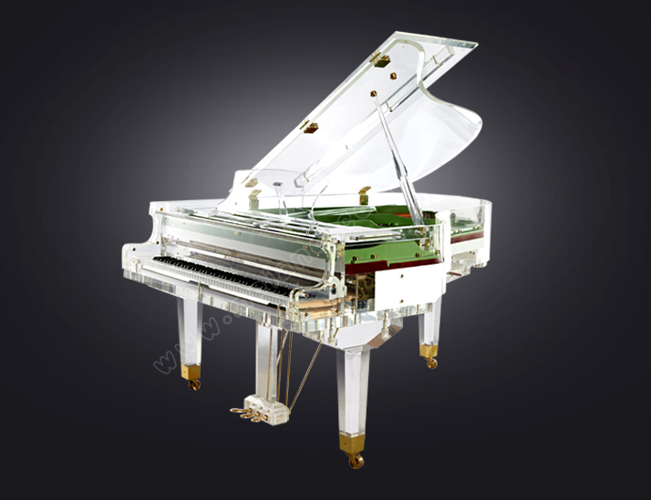 - 采用現代高科技環保材料,琴身通體晶瑩剔透、炫目璀璨。流暢舒展的線條、渾厚有力的直琴腿、搭配簡潔大氣的水晶譜架,每一處細節都彰顯出澄凈的靈氣和王者的尊貴,宛若一座夢幻的水晶宮殿,承載著音樂和夢想,任琴聲回蕩在湛藍純凈的天空。
